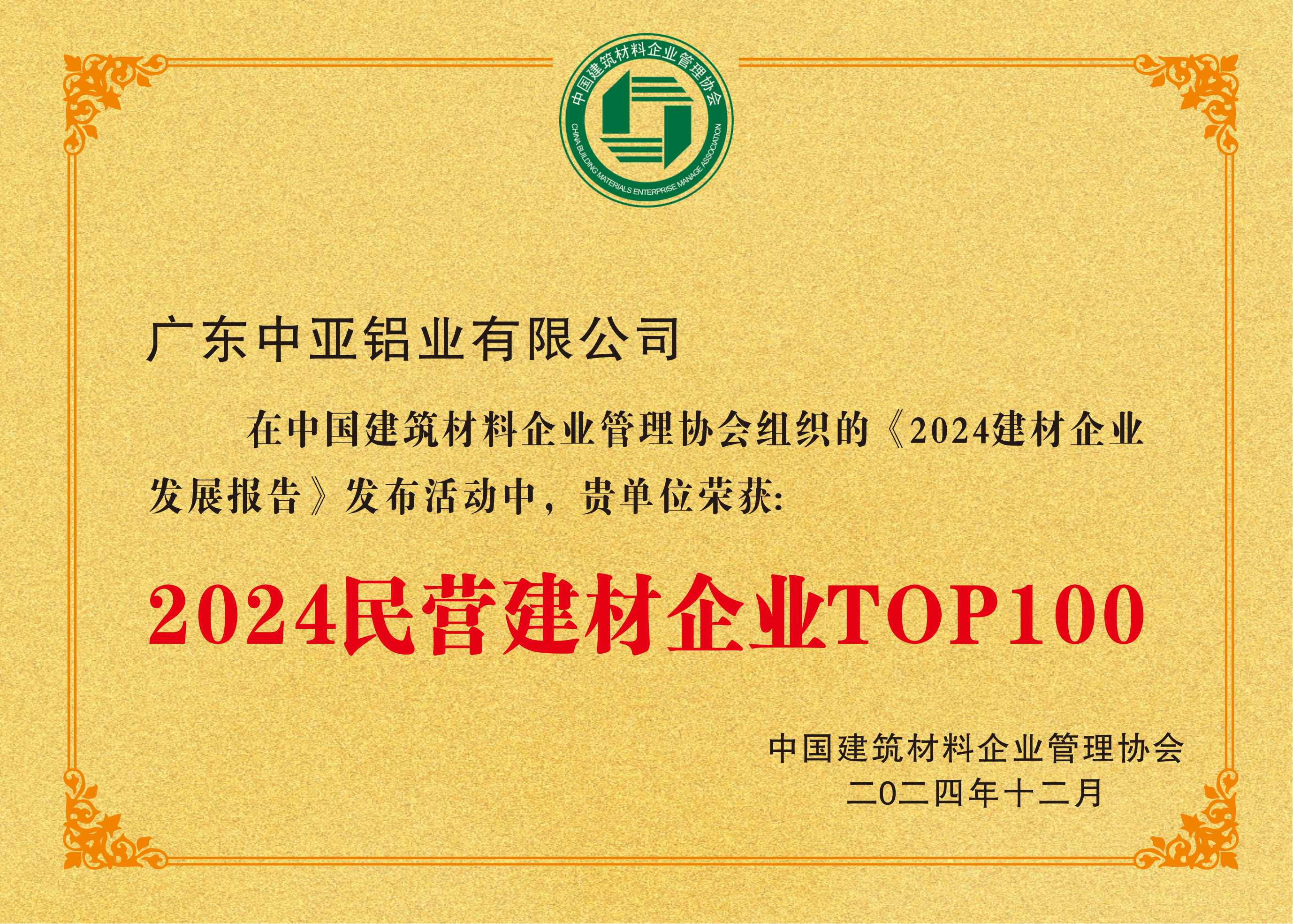 2024 Top 100 Private Building Material Enterprises