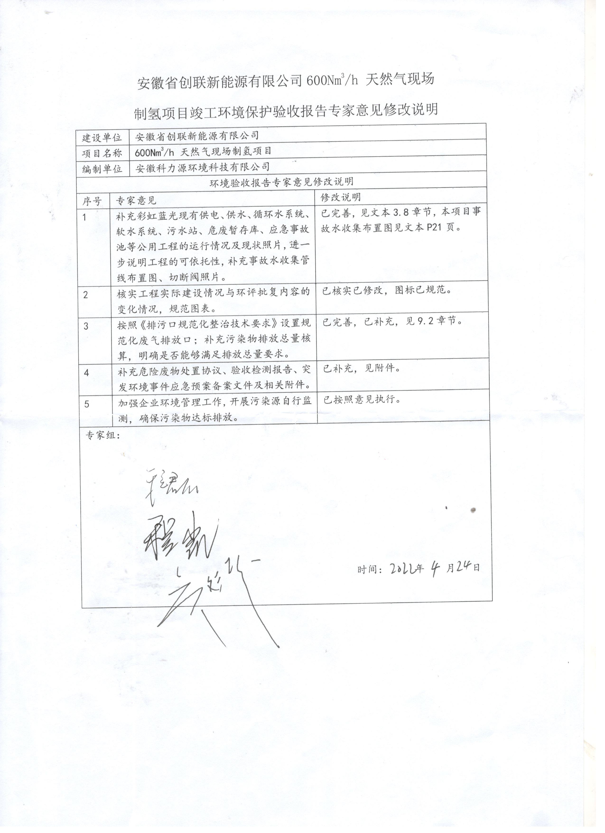 安徽省創(chuàng)聯(lián)新能源有限公司600Nm3/h 天然氣現(xiàn)場(chǎng)制氫項(xiàng)目驗(yàn)收組嚴(yán)格依照國(guó)家有關(guān)法律法規(guī)、建設(shè)項(xiàng)目竣工環(huán)境保護(hù)驗(yàn)收技術(shù)規(guī)范、本項(xiàng)目環(huán)評(píng)報(bào)告書(shū)和審批部門(mén)審批決定等要求對(duì)本項(xiàng)目進(jìn)行驗(yàn)收。驗(yàn)收組認(rèn)為本項(xiàng)目實(shí)施工程按照環(huán)評(píng)及其批復(fù)的要求,落實(shí)了相關(guān)環(huán)保設(shè)施,建立了相應(yīng)環(huán)保管理制度,符合環(huán)保驗(yàn)收條件,可通過(guò)環(huán)保驗(yàn)收。根據(jù)《國(guó)務(wù)院關(guān)于修改<建設(shè)項(xiàng)目環(huán)境保護(hù)管理?xiàng)l例>的決定》(國(guó)務(wù)院令第682號(hào)),以及環(huán)境保護(hù)部《關(guān)于發(fā)布<建設(shè)項(xiàng)目竣工環(huán)境保護(hù)驗(yàn)收暫行辦法>的公告(國(guó)環(huán)規(guī)環(huán)評(píng)[2017]4號(hào)),現(xiàn)安徽省創(chuàng)聯(lián)新能源有限公司600Nm3/h 天然氣現(xiàn)場(chǎng)制氫項(xiàng)目竣工環(huán)境保護(hù)驗(yàn)收?qǐng)?bào)告公示如下: