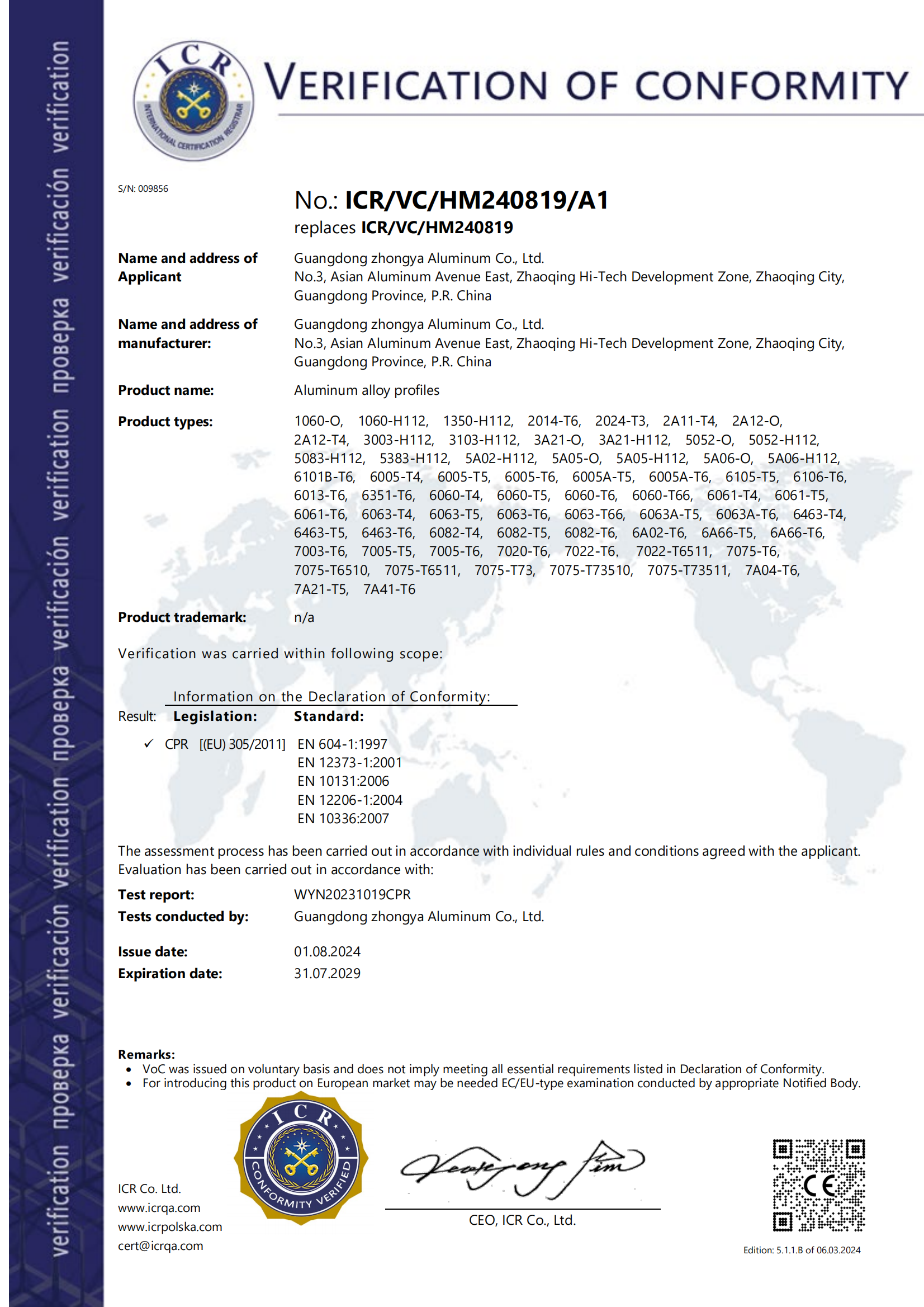 BV材料批準(zhǔn)證書(shū) 變形鋁
